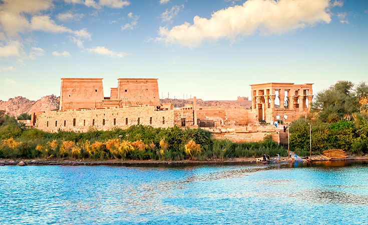 - 아스완 하이댐의 건설로 아질키아 섬에서 피라에 섬으로 이전된 이시스 신전