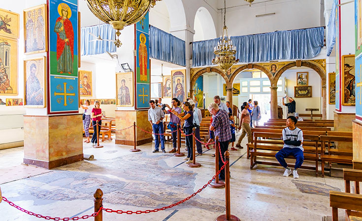 - 아름다운 모자이크 벽화와 바닥들이 다수로 발견된 기독교 도시에서 성 조지 그리스 정교회 성당