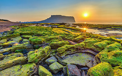 ► Visit Seongsan Ilchulbong Peak, which rises 180 meters above sea level due to a magma flow under the sea over 5,000 years ago. Originally a separate island, it is now connected to the main island by a build-up of sand and soil.