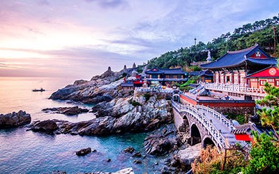 ► Next, you will proceed to Yonggungsa Temple via Dalmaji-gil Road, which is famous for its views of the blue ocean, white sandy beach, Camellia forest, and pine tree forest, making it one of Busan’s eight scenic sites. Haedong Yonggungsa Temple is located on the coast of the northeastern portion of Busan.