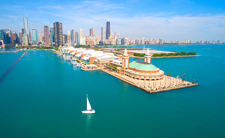 - 시카고 시내에서 가장 경치가 좋은 곳 중의 하나인 네이비 피어