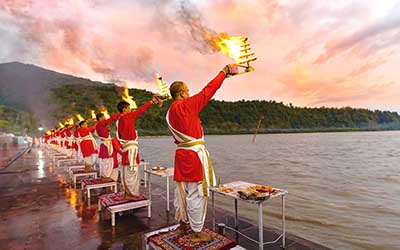 - 바라나시의 메인 가트에서 매일밤 강가신께 올리는 의식. 갠지스 강을 무대삼아 펼쳐지는 힌두 문화의 예술이다. (보트 탑승)