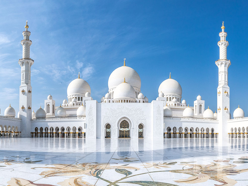 ② 셰이크 자이드 그랜드 모스크(내부) - 순백의 대리석과 황금이 어우러진 아부다비 최고의 이슬람 성전