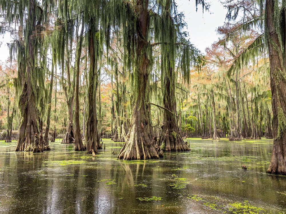 ② 캐도 레이크 – 텍사스 북동부에 위치한 자연 호수로 사이프러스 숲이 물속에서 자라는 독특한 생태계를 지닌 습지 지역